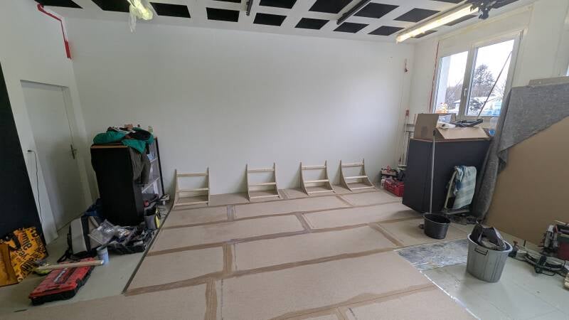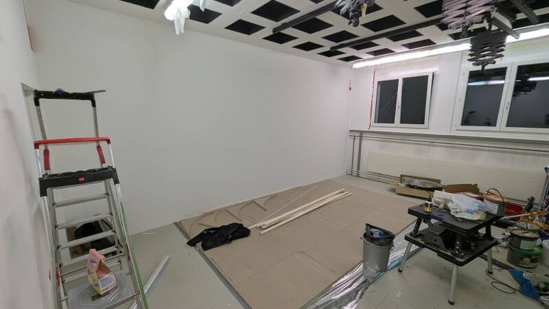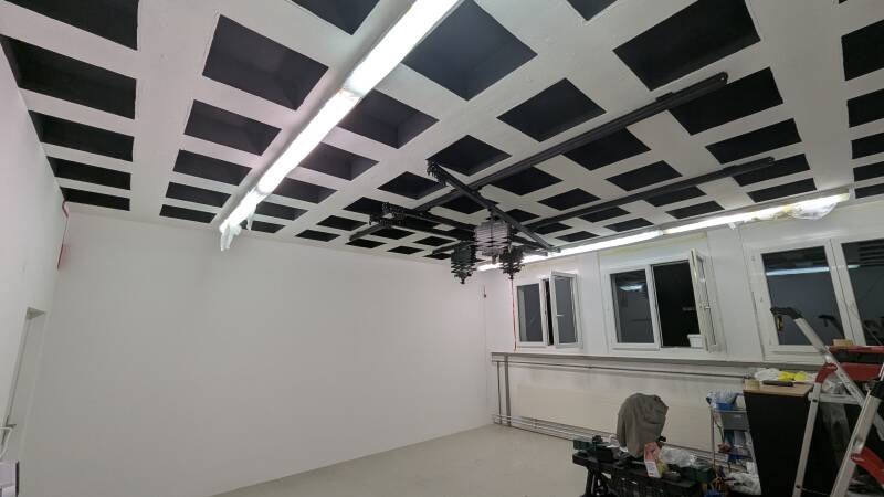 - Vertiefungen der Schallschutzdecke wurden schwarz gestrichen.