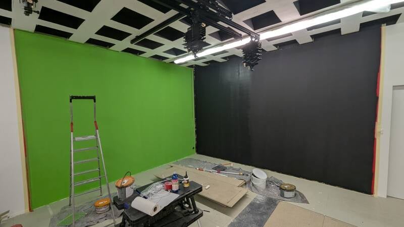- Vorbereitung zum Streichen der grünen Wand.